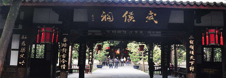 Wuhou Temple (Memorial Temple of Marquis Wu) (Figure 2) is dedicated to Zhuge Liang, the Marquis Wu (Wuhou) of Kingdom of Shu in the Three Kingdoms Period (220 - 280). Located in the south suburb of Chengdu, the temple covers 37,000 square meters (398,277 square feet). The date of its establishment is unclear, only that it was built next to the temple of Liu Bei, the emperor of Shu. It was combined with the Temple of Liu Bei at the beginning of the Ming Dynasty; consequently, the entrance plaque reads 'Zhaolie Temple of Han Dynasty' (Zhaolie is the posthumous title of Liu Bei). The current temple was rebuilt in 1672. Surrounded by old cypresses and classical red walls, it evokes nostalgia.
